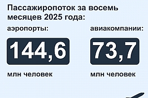Почти 74 млн пассажиров перевезли российские авиакомпании за 8 месяцев 2025 года