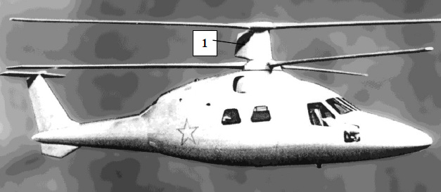 Рис.2 Вертолет В-60 в соосной конфигурации несущих винтов (проект 1985 г.) 1- аэродинамическое капотирование агрегатов соосного несущего винта.