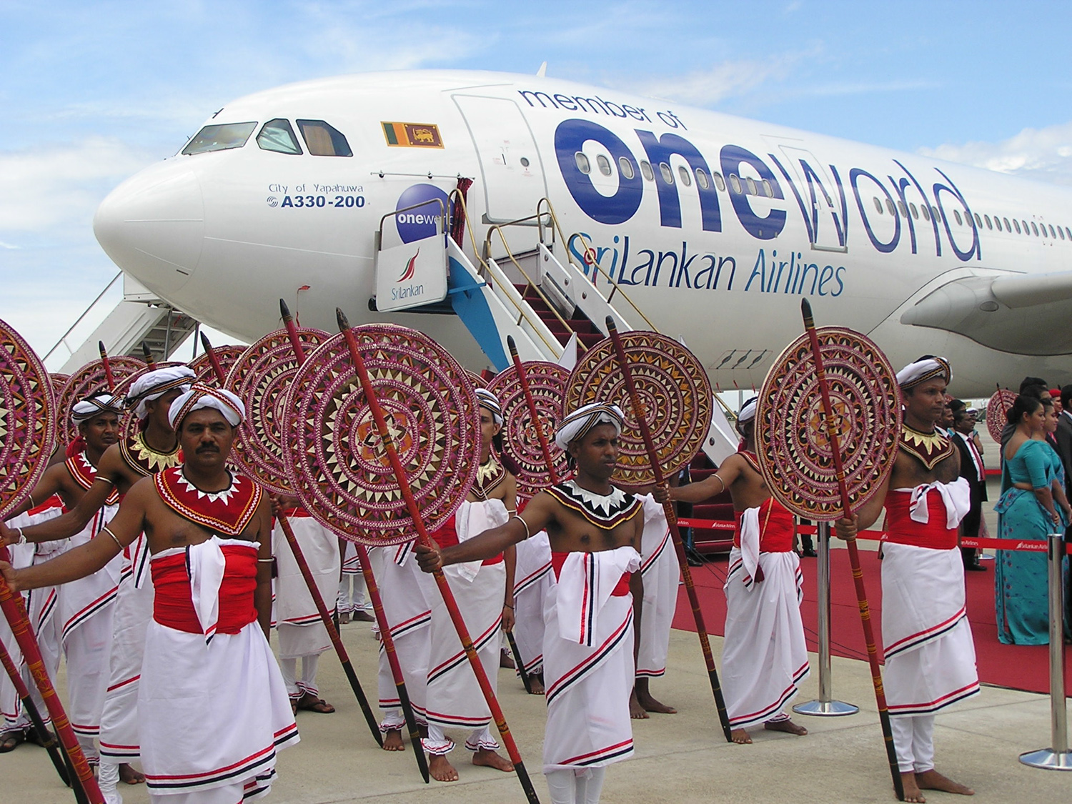 В завершении церемонии с одной стены зала упал занавес и взорам гостей предстал перрон международного аэропорта Mattala Rajapaksa International, на котором, в окружении большого количества ланкийцев в национальных одеждах, стоял первый самолет авиакомпании SriLankan в ливрее oneworld – Airbus A330. Теперь логотипы oneworld будут нанесены на все самолеты авиакомпании.