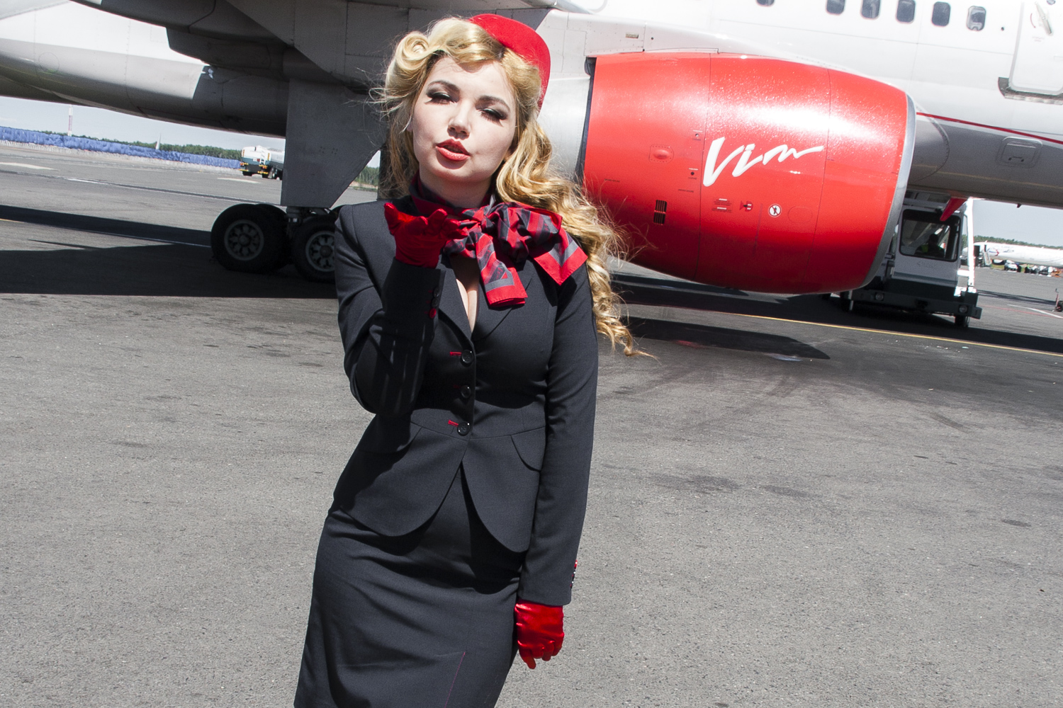 Фотосессия на стоянке самолетов авиакомпании ВИМ-АВИА лучше всего продемонстрирует вам стильных и ярких бортпроводников: