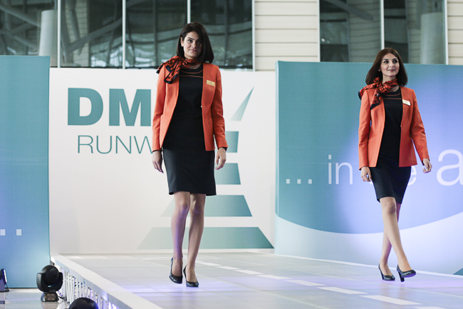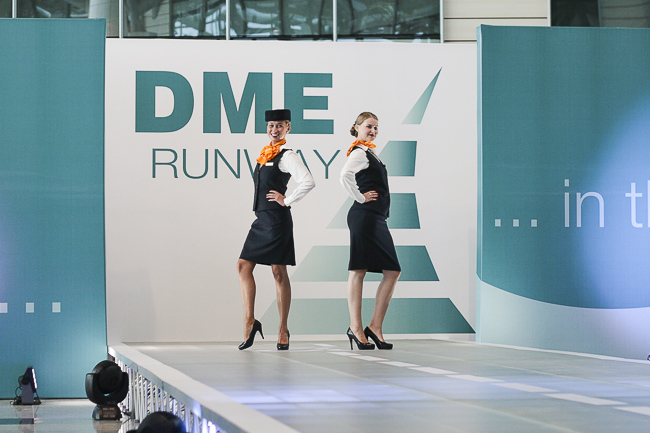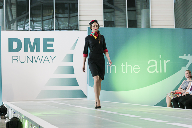 Показ моды высокого полета прошел в «воздушном пространстве» недавно открытого в аэропорту Домодедово атриума. Преобладание стекла и функциональное многообразие пространства позволили максимально использовать преимущества солнечного света для естественной передачи цвета униформы во время дефиле.
