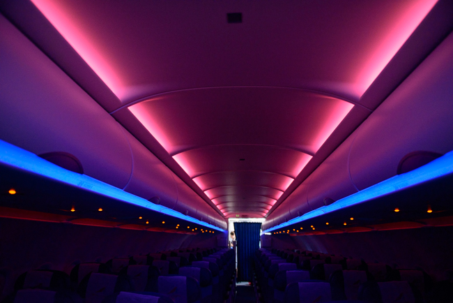 Салоны самолета А321 «Трансаэро» имеют LED-подсветку. В кресельных блоках предусмотрены универсальные и USB-разъемы для подзарядки портативных электронных устройств.