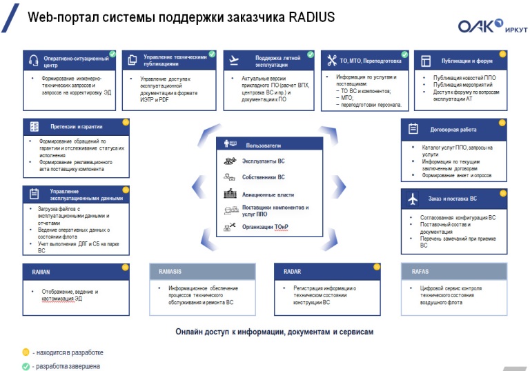 КИС ПЗ. На данный момент основным средством коммуникации является ОСЦ, куда приходят запросы от авиакомпаний и центров ТОиР. Сервисы по созданию и обработке инженерно-технических запросов и запросов на корректировку эксплуатационной документации были введены в эксплуатации самыми первыми, как наиболее критически важная часть всей системы.