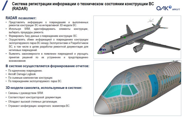 RADAR - информационно-аналитическая система по обеспечению процессов регистрации, хранения и обработки информации о повреждениях и выполненных ремонтах в эксплуатации конструкции воздушных судов с применением 3D моделей ВС и Руководства по ремонту конструкции планера (SRM) в формате S1000D.