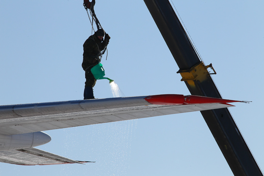 Фоторепортаж подготовки к взлету и взлет Ту-154 авиакомпании "Алроса" из Ижмы: (фото: Алексей Нагаев)