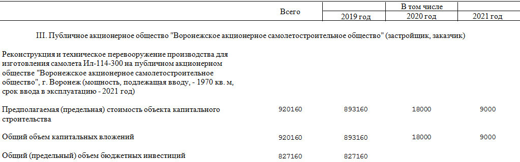 послепродажного обслуживания самолета Ил-114-300, общего объема капитальных вложений, общего (предельного)