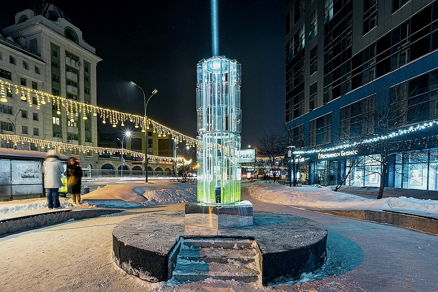 «В дневное время стеклянные столбы по своей массе нейтральны и развлекают горожан солнечными зайчиками. Но с наступлением темноты сквер заявляет о себе, обозначая себя не только в пешеходной плоскости, но и в воздухе. В результате мы получаем пространство, ограниченное световыми столбами внутри сквера. Можно в него войти, оказавшись внутри света, а можно пройти мимо. Но не заметить его будет нельзя», — отметил Дмитрий Мороз, автор проекта, архитектор, дизайнер, студент магистратуры НИУ ВШЭ «Предметный и промышленный дизайн».