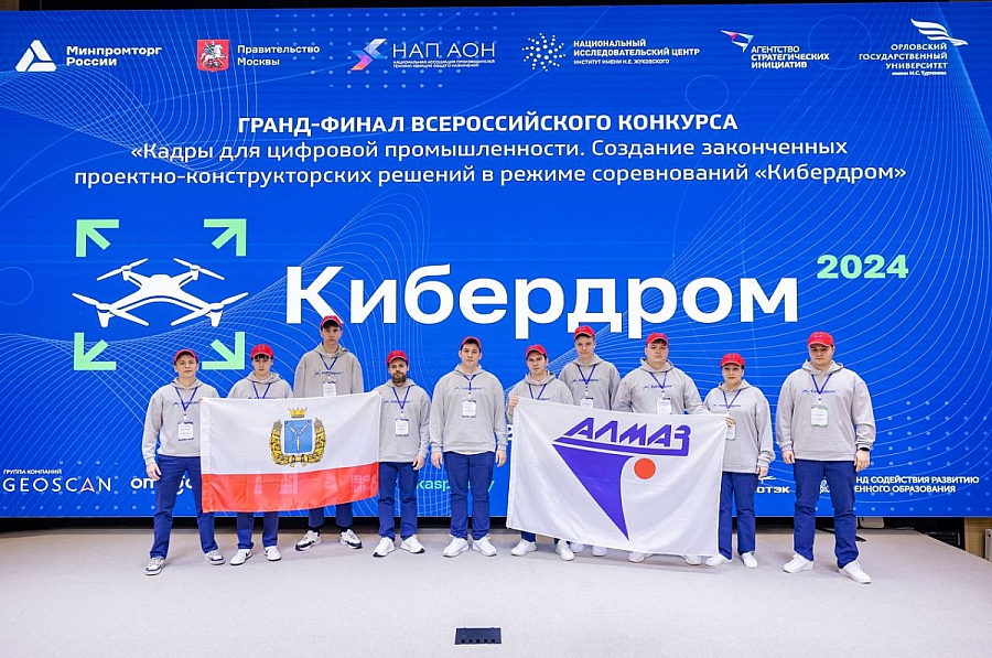 В гранд-финале «Кибердром.2024» команда НПП «Алмаз» Diamond Sky набрала наибольшее количество очков по итогам этапов «Дрон-Разведка», «Кибердоставка», «Дрон-сим» и «Робо-прог».