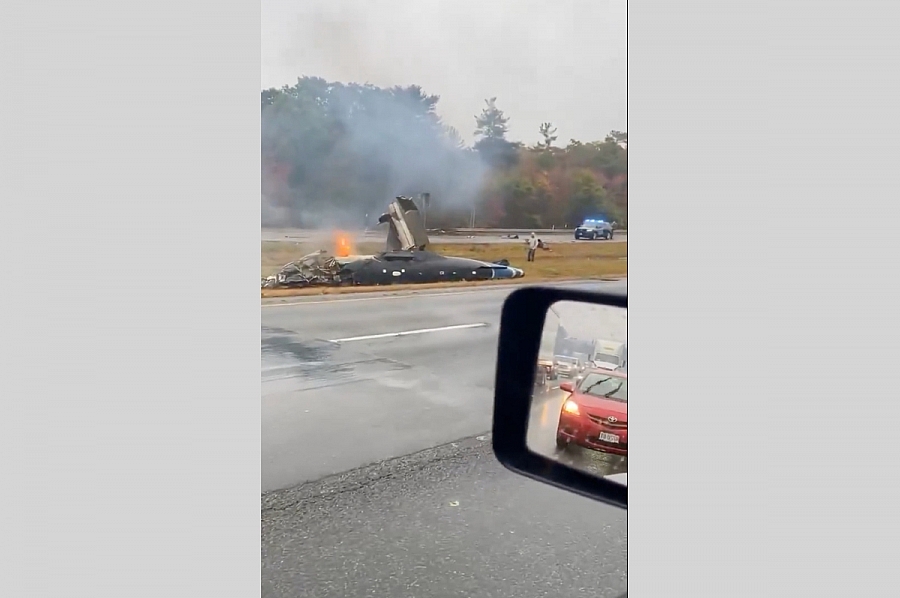 Как заявили в полиции штара, самолет, предположительно, пытавшийся приземлиться в региональном аэропорту Нью-Бедфорд, разбился. На видео с места происшествия видно, как самолет горит на разделительной полосе шоссе.